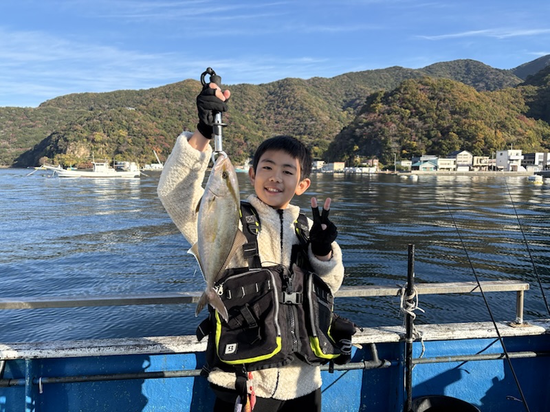 係留船に乗って45センチのカンパチを2匹釣って大喜びでしたー!