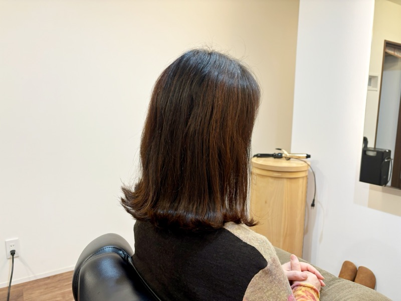 この日のお客様も悩んでいましたが当店に来てからは傷まない白髪染めで染めて頭皮が荒れないので喜んで頂いています。