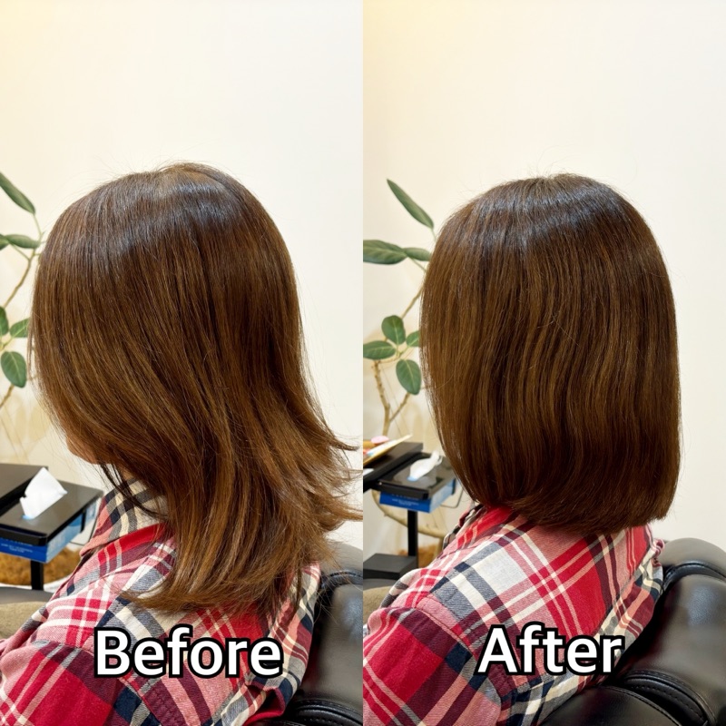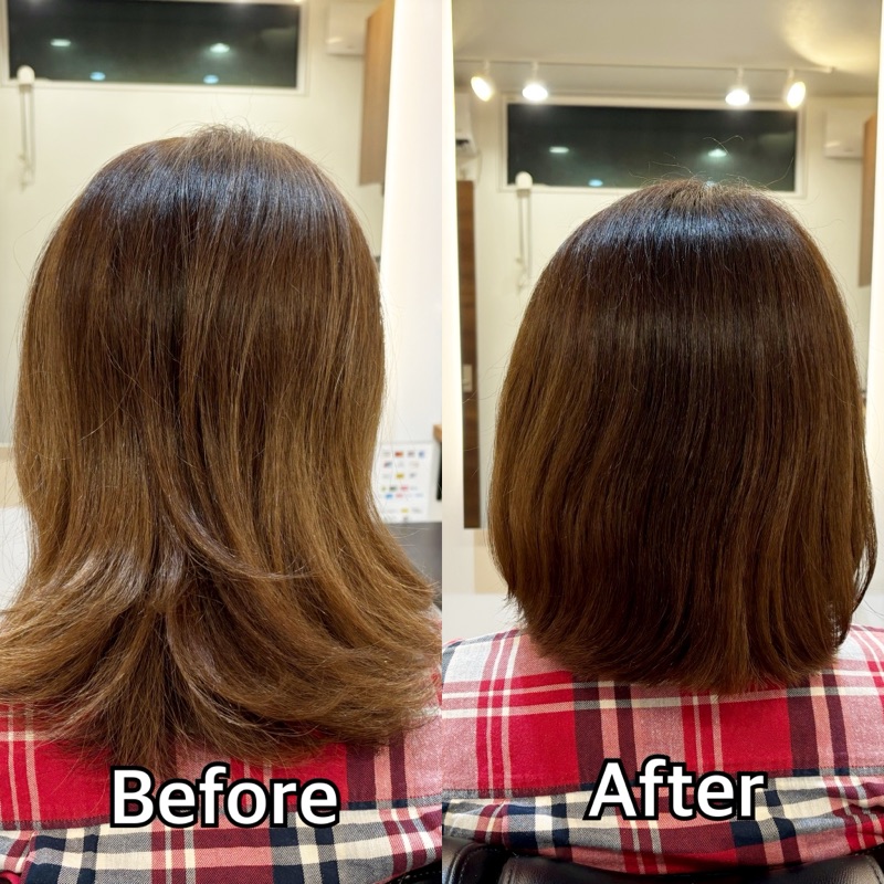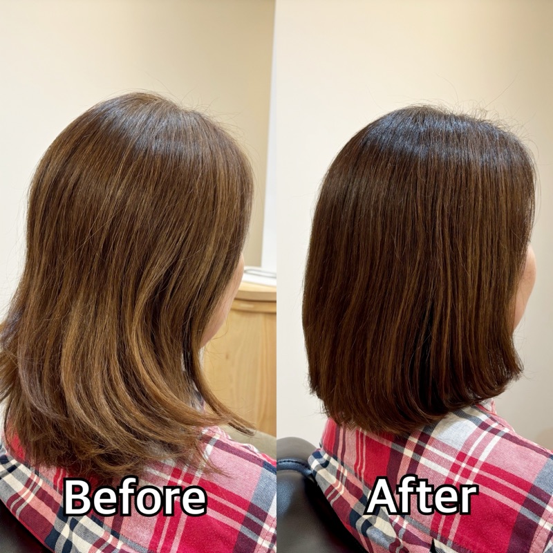- 白髪染めで年々パサついていた髪が傷まない白髪染めで髪質改善!