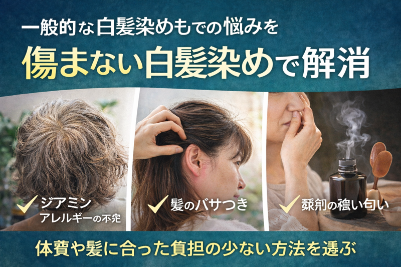 そんな悩みに安心して続けられる傷まない白髪染めをご提案しています。