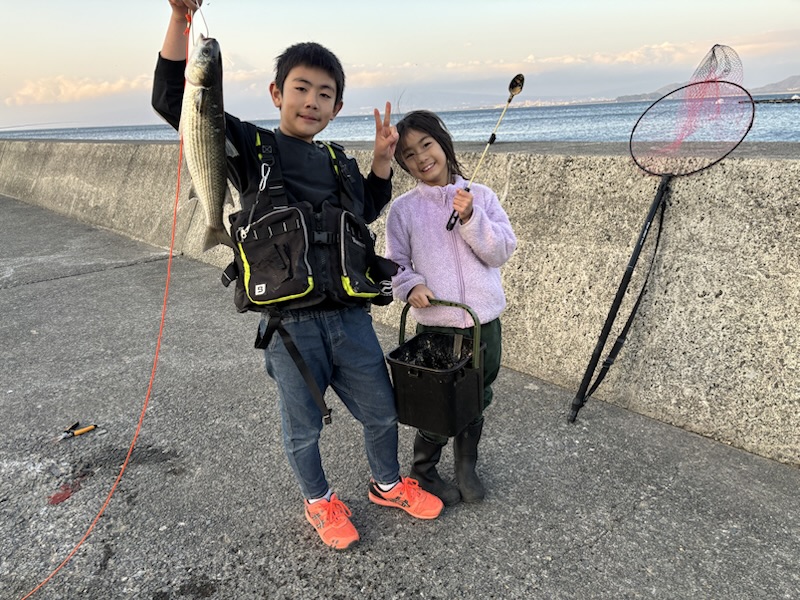 息子と娘を連れて魚釣り〜!