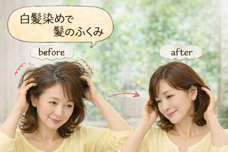 髪の膨らみで悩んでいるならカットと白髪染めが原因かもしれません。