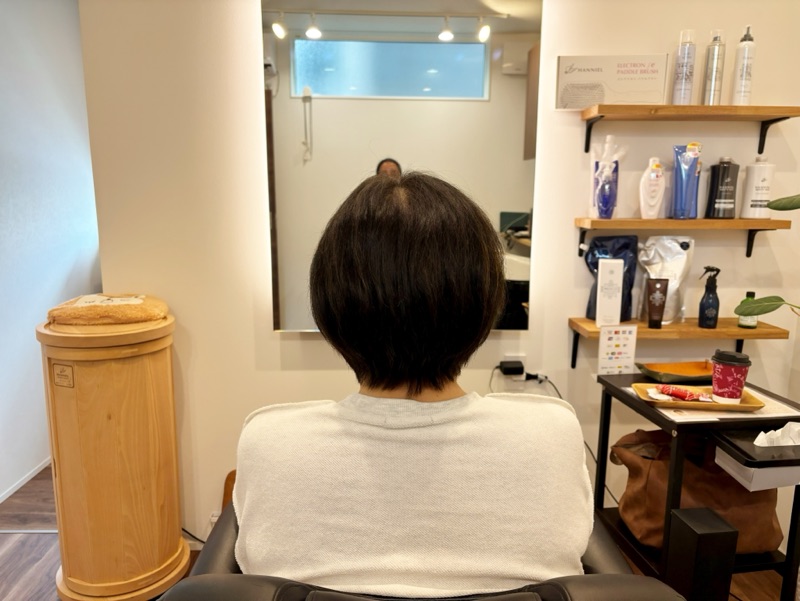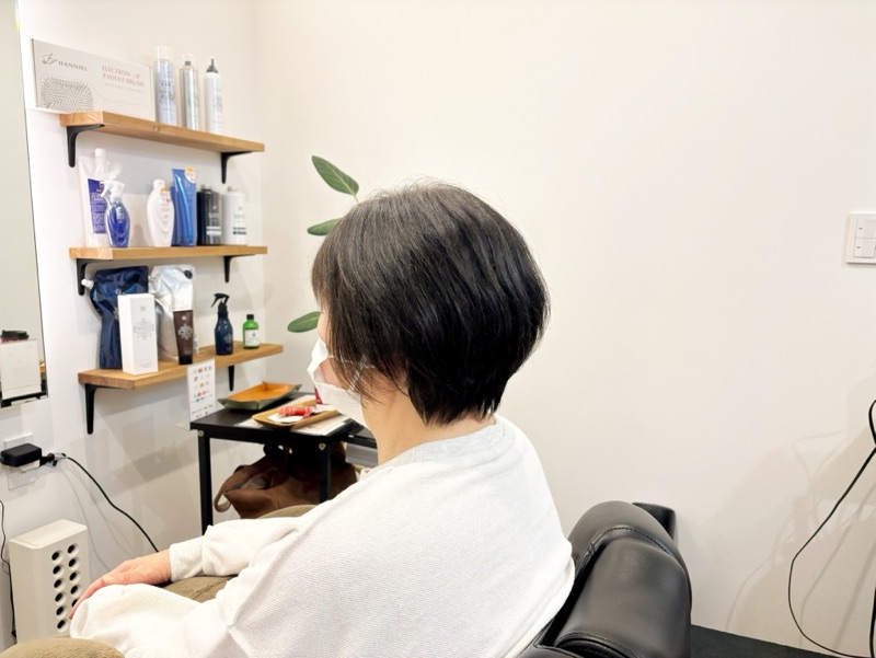 この日も1ヶ月半に1度の白髪染めで白髪のみ丁寧に染めていきます!
