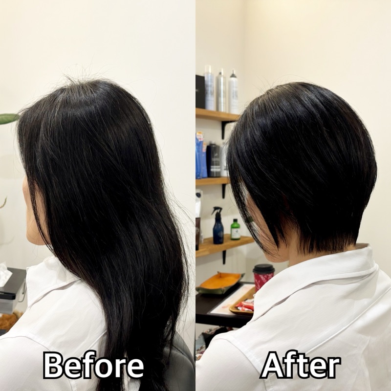 ばっさりカットして髪も白髪染めで髪も傷まず喜んで頂けました!