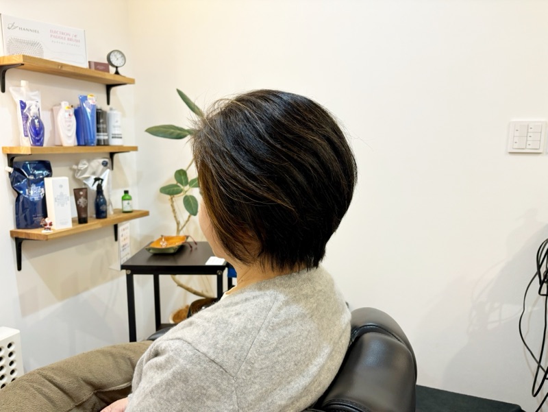 この日のお客様は当店にきてからは傷まない白髪染めで1ヶ月半に1度カットカラーコース!